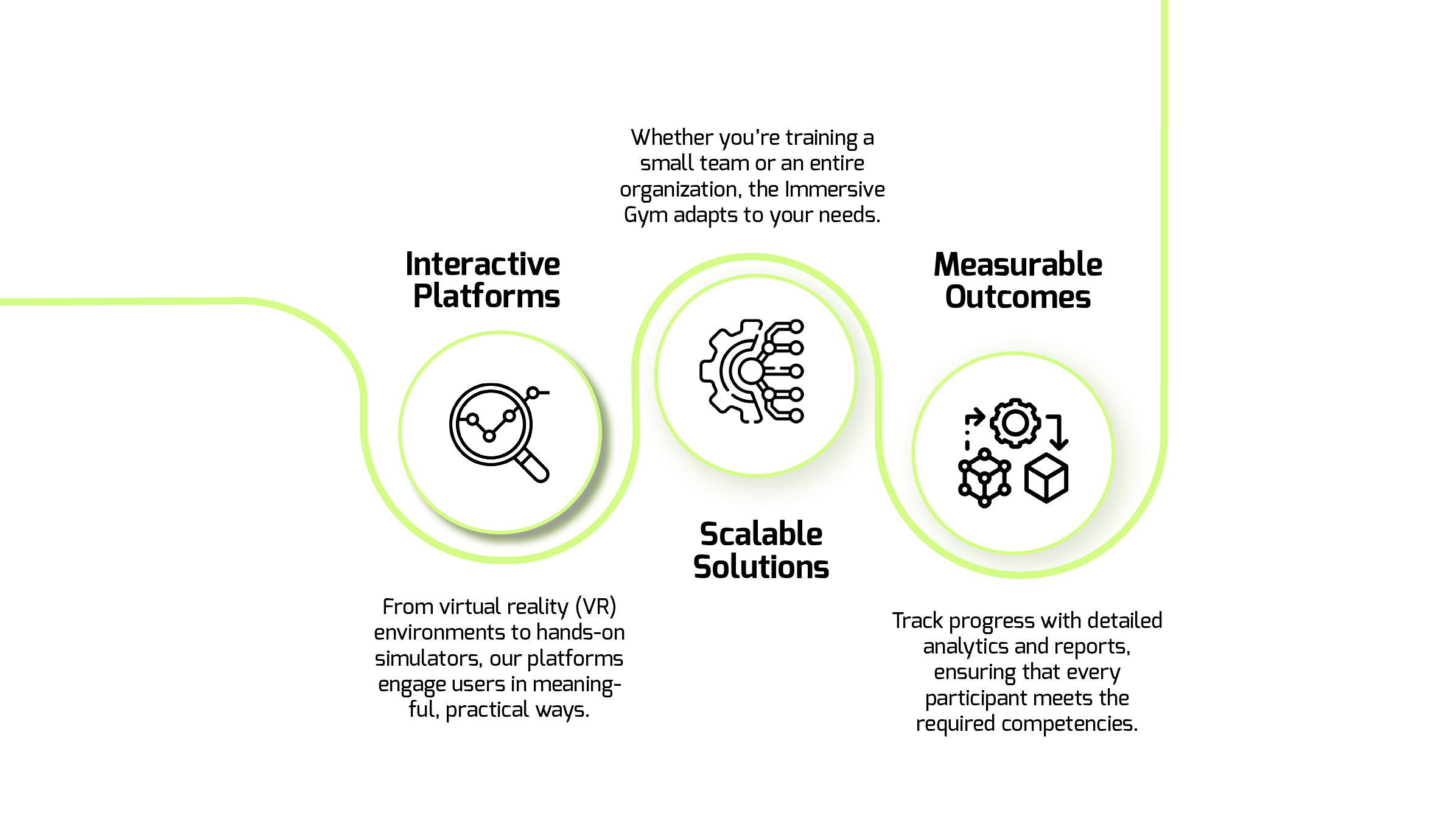 The Immersive Gym Unit is our response to the ever-evolving needs of businesses and professionals seeking impactful, hands-on learning experiences. By combining cutting-edge technology with industry-specific insights, we deliver immersive training platforms that transform how skills are acquired and mastered.